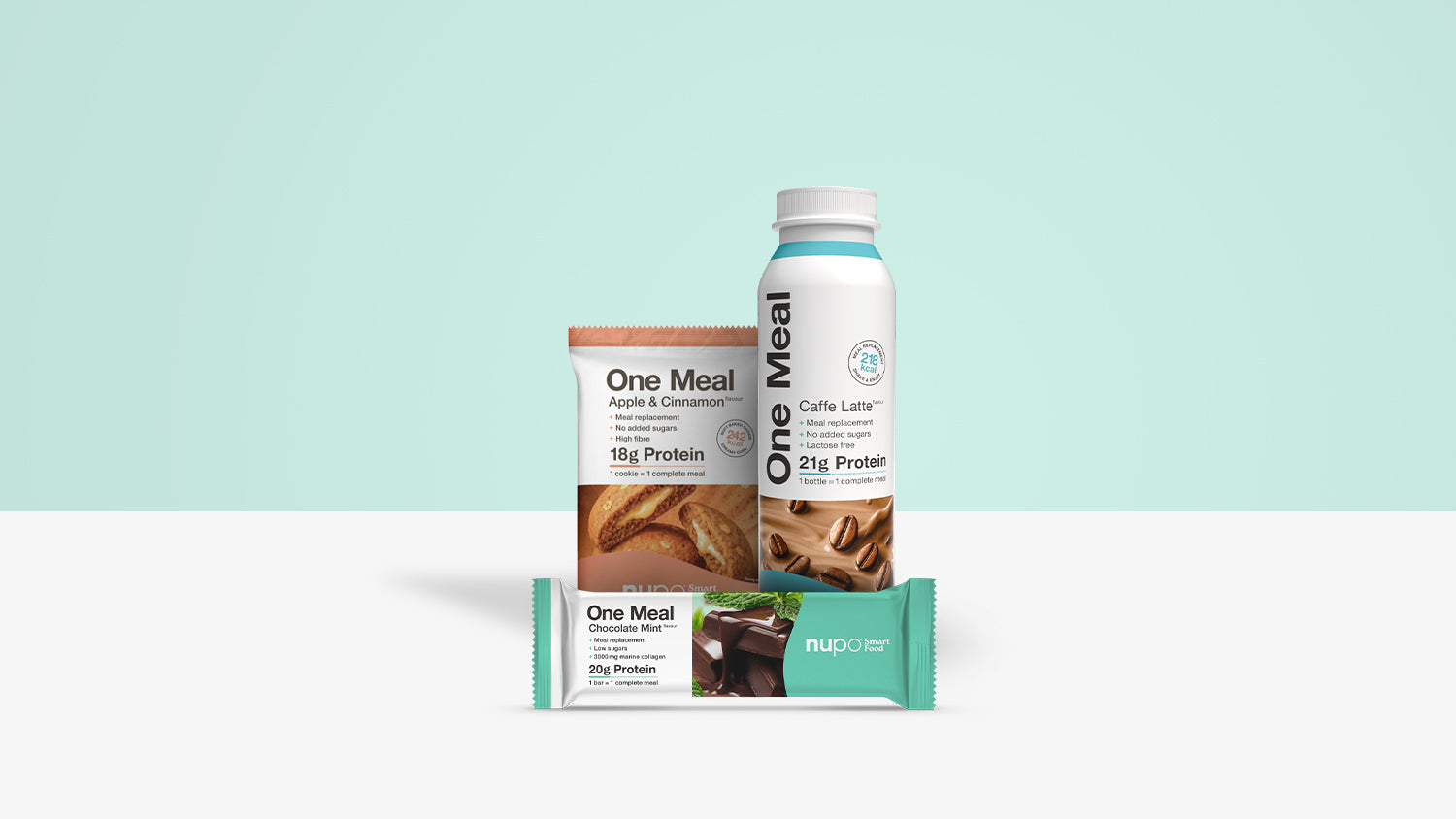 Alla One Meal-produkter (pannkakor, färdiga shakes och bars) kan kombineras efter eget önskemål. Vi rekommenderar inte att kombinera Nupo Diet och Nupo One Meal på grund av skillnaden i näringsinnehåll, för att säkerställa att du får all nödvändig näring när du använder Nupo Diet. Du kan kombinera alla Slim Boost-produkter med alla One Meal-produkter.