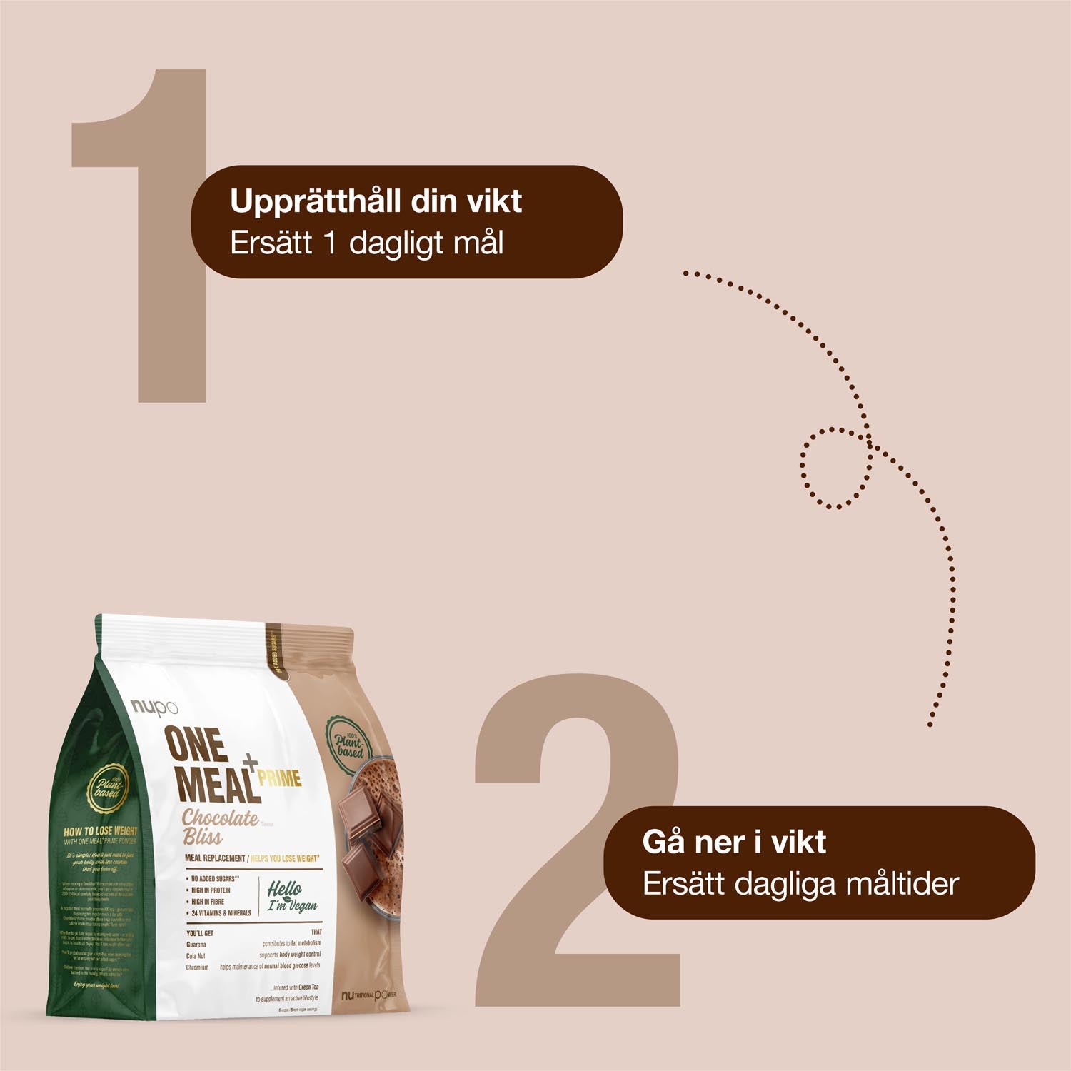 Ja, One Meal är utmärkt för träning och motion. Dess höga innehåll av protein och fibrer, tillsammans med alla nödvändiga vitaminer och mineraler, gör det till ett bra val både före och efter träningen för att stödja återhämtning och energiförsörjning, samtidigt som det håller kaloriintaget lågt.