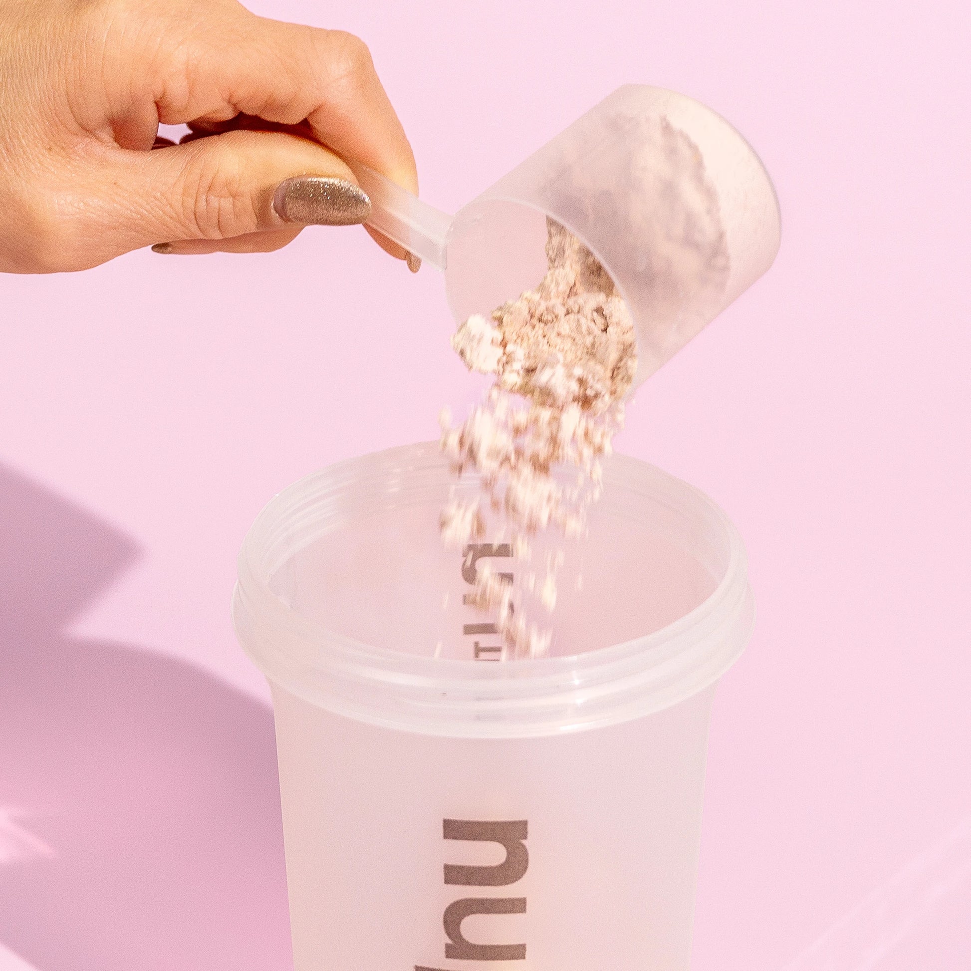 Tillsätt 250-300 ml kallt vatten och 1 skopa Nupo i en shaker. Skaka ordentligt och njut.
